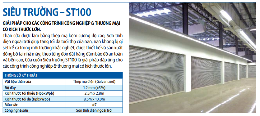 Thông số kỹ thuật cửa cuốn Siêu trường ST100